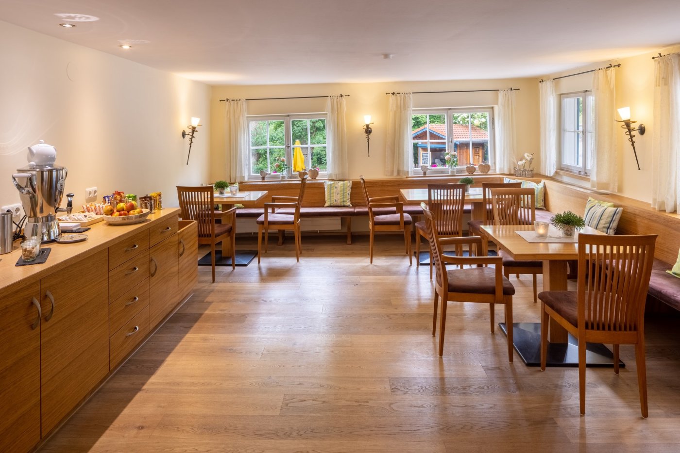Der Tag beginnt mit einem reichhaltigen Frühstück, am Abend verwöhnen wir Sie mit einem mehrgängigen Menü. Besonders beliebt ist der regelmäßig stattfindende Grillabend im idyllischen Biergarten, der Genuss und gemütliche Allgäu-Atmosphäre perfekt vereint.